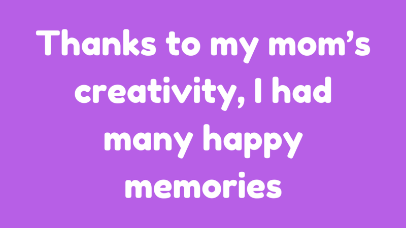 My mom has always been thrifty. When she graduated from high school, she moved to the big city to find a job. She worked tirelessly and lived simply. She never spent a lot of money on herself, getting by with hand-me-downs from her older sister and cheap eats so she could save as much as possible. Her minimalist ways continued after she got married, but she always had a special talent for finding joy in the simple things. Thanks to my mom’s creativity, I had many happy memories as a child. I remember when my mom would drive me on her Moped to the public art gallery for one of our weekend mother-daughter escapades and sneak in a tea and croissant at a French cafe nearby, which was our little secret from dad. When we were stuck at home during a massive Hurricane, I begrudgingly worked on my homework as instructed. When I finished, I noticed that my mom had drew a bubble bath and brought out bathrobes. She had turned a dreadful, boring evening into a home spa date!
