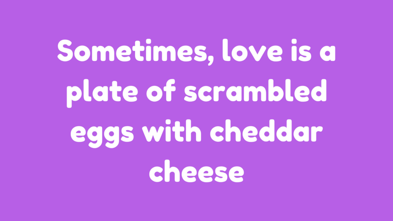 Sometimes love isn’t loud, it isn’t always in your face with a box of chocolates and flowers. No, sometimes, it is a plate of scrambled eggs with cheddar cheese.