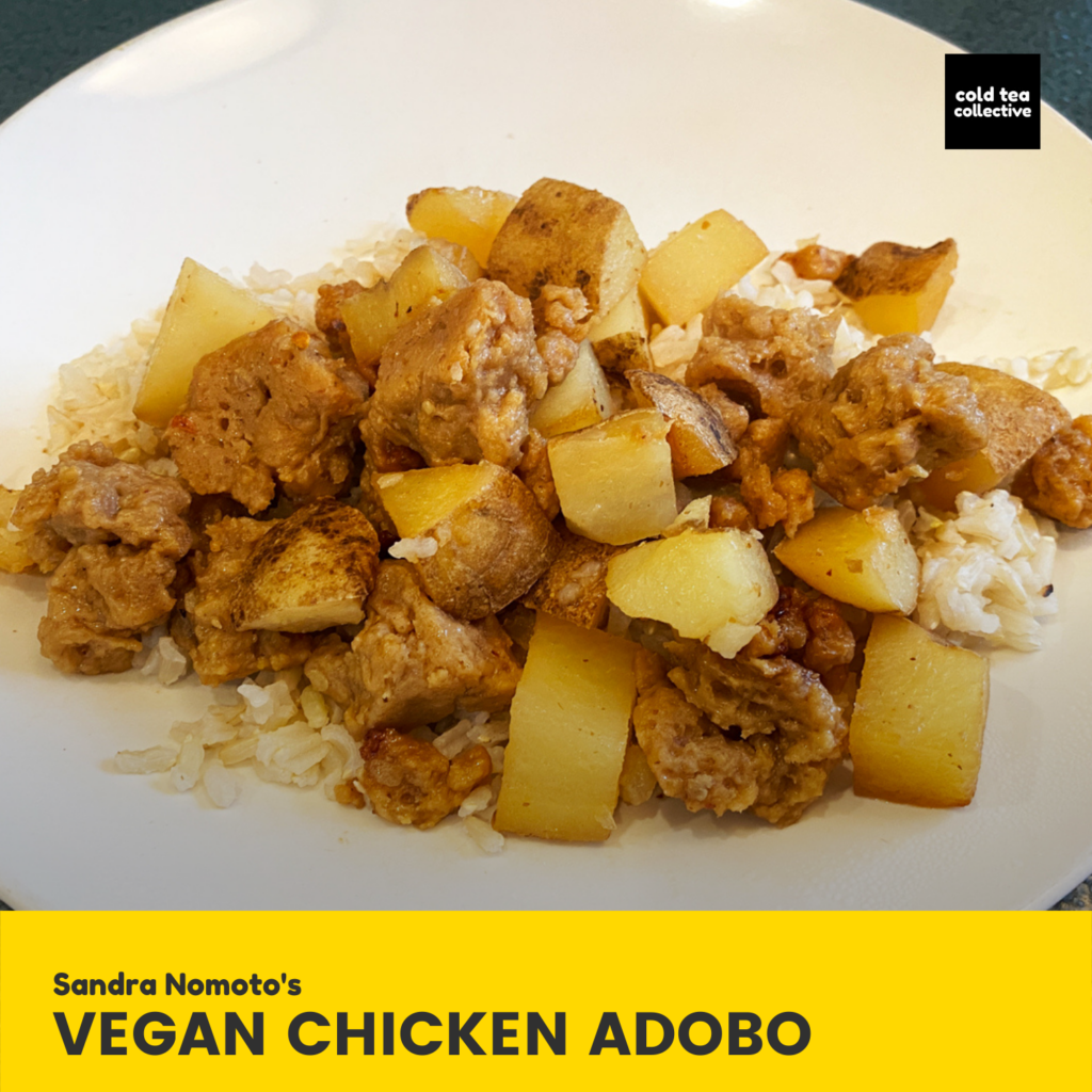 I’m still crestfallen since my failed attempt at making vegan lumpia (Filipino egg rolls) three years ago, but I have good news. I reached almost four years as a vegan, and successfully made a vegan version of one of my childhood dishes: Chicken Adobo!