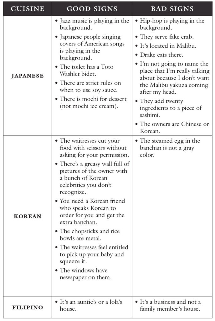 “Not having to explain dim sum to non-Asians.”