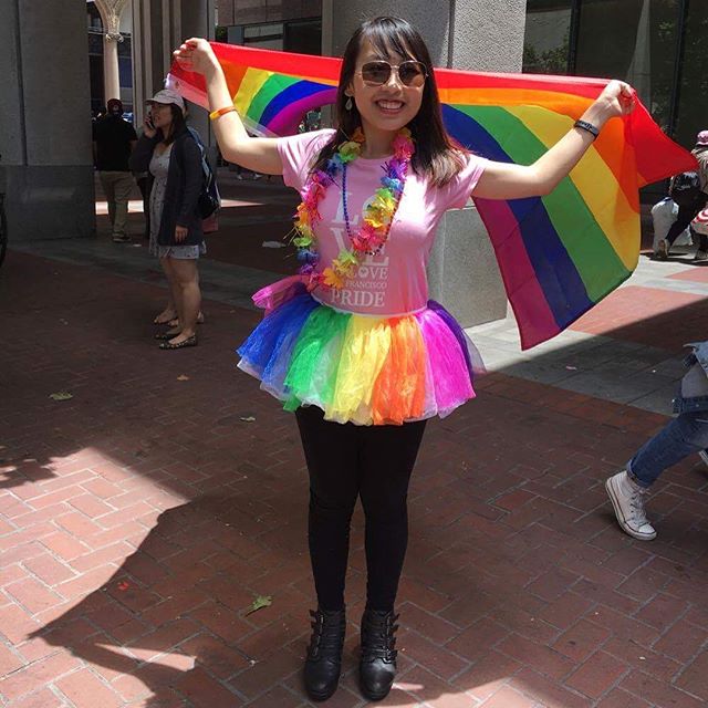 “I never thought there was a possibility that I was queer,” she said. She recalls in high school driving with her family past the San Francisco Pride festival and noting that it was all white people. Only in college she realized that she was bisexual and after college attended the festival herself.